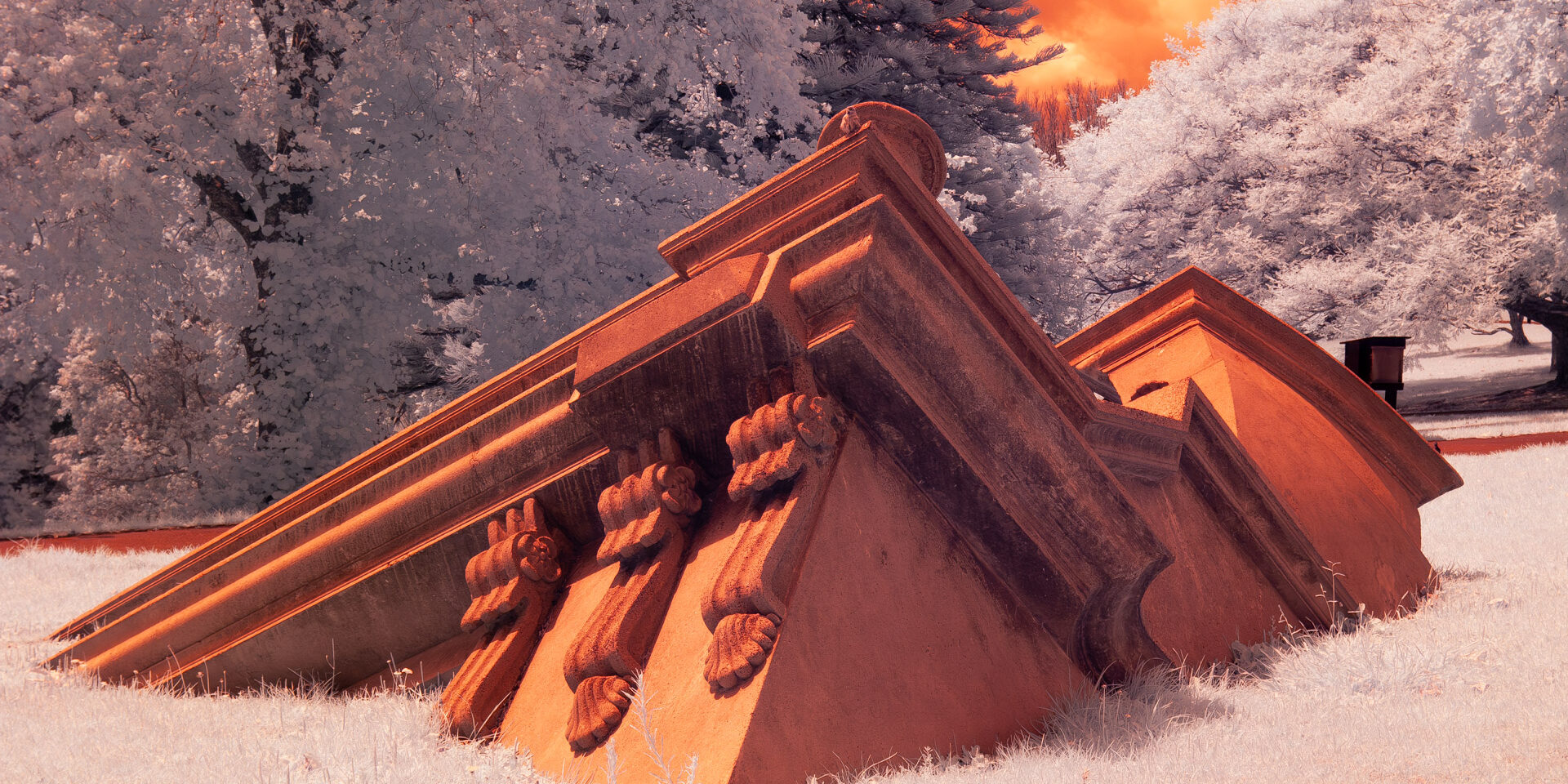 Like many photographers who arrive at IR after years of working in the visible spectrum, attraction lies in its ability to reinterpret familiar scenes, foliage, sky, architecture, into something simultaneously recognisable and alien.