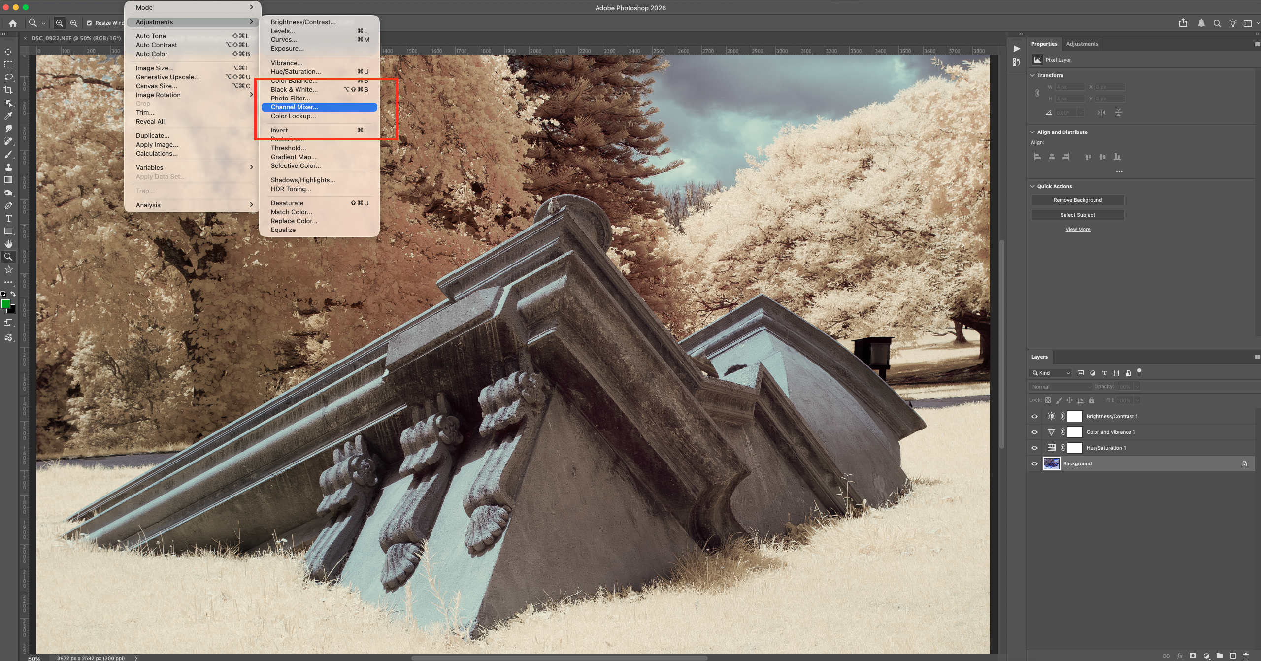 Post-production is where infrared images are fully realised. If you were expecting to have a near-usable image straight out of the camera, you may be very disappointed, unless of course the ‘out of the box’ look happens to be what you like about it – it so happens I do like it that way in many cases.